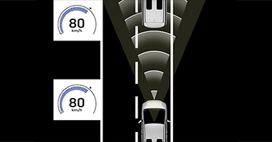 - Hệ thống sử dụng radar gắn dưới lưới tản nhiệt phía trước cùng với camera để phát hiện các phương tiện phía trước, đồng thời tự động điều chỉnh tốc độ để đảm báo khoảng cách an toàn với các phương tiện đang lưu thông.