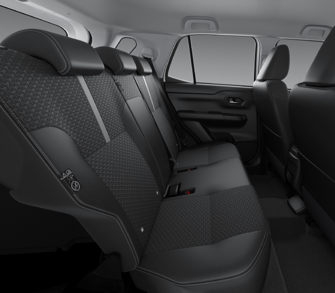 Hàng ghế sau rộng rãi, tựa đầu tùy chỉnh. Chất liệu ghế da pha nỉ mang đến cảm giác hiện đại.