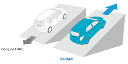 HAC sẽ tự động phanh các bánh xe trong 2 giây giúp xe không bị trôi, khi người lái chuyển từ chân phanh sang chân ga để khởi hành ngang dốc.