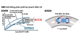 EBD giúp phân bổ lực phanh hợp lý đến các bánh xe, giúp nâng cao hiệu quả phanh, đặc biệt khi xe đang chất tải hoặc vào cua.